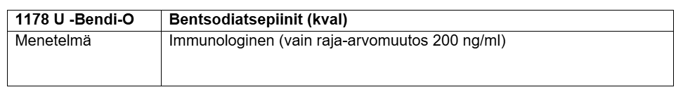 Tutkimukseen 4221 U -Huum-O sisältyvän U -Bendi-O:n positiivisen testituloksen raja-arvo on 17.6.2025 alkaen 200 ng/ml aiemmin käytössä olleen 100 ng/ml sijaan. Muutoksella parannetaan seulonnan tarkkuutta ja yhtenäistetään testauskäytäntöjä. Väärän positiivisen bentsodiatsepiinien seulontatuloksen saattaa aiheuttaa etenkin sertraliinilääkitys, jonka vaikutusta voidaan vähentää ajoittamalla valvottu näytteenotto mahdollisimman lähelle jäännöspitoisuutta. Ketiapiini ei häiritse menetelmää enää merkittävästi raja-arvon noston jälkeen, vaikka nykyisellään todettu taustatekijäksi osassa selvityksistä, joissa bentsodiatsepiinien seulonta on ollut positiivinen ja varmistus negatiivinen.