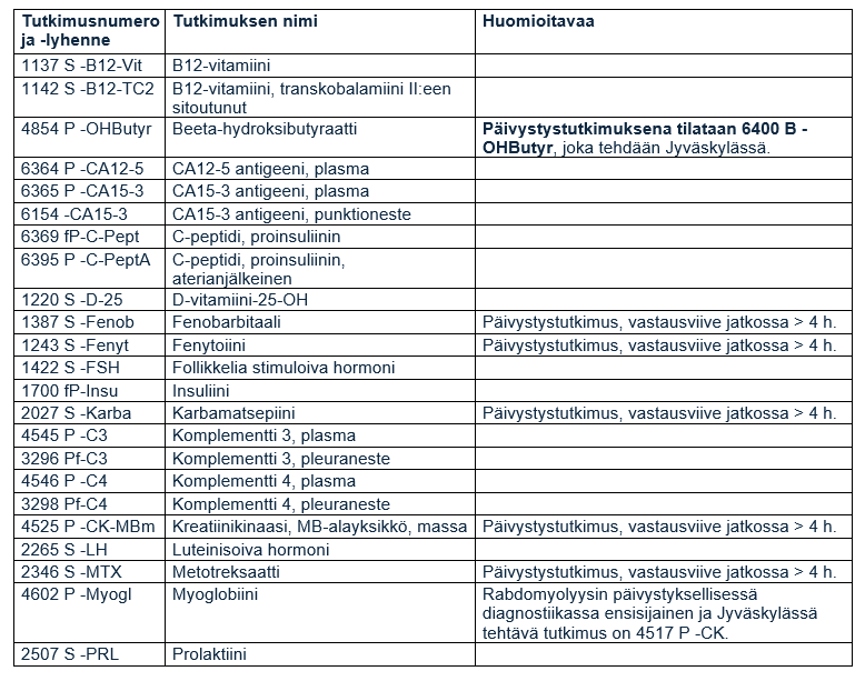 Tarkemmat tiedot tutkimuksista ja niiden tulkinnasta pyydetään tarkistamaan ohjekirjasta Fimlabin Extranet-palvelusta.