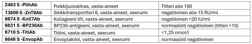 Lisäksi Ihon epiteelin tyvikalvon vasta-aineiden tilaaminen muuttuu 10.4.2026: