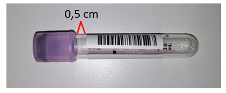 Förutom rörbytet blir även märkning av röret viktigare. Etiketten ska fästas direkt på röret och det ska finnas ett utrymme på cirka 0,5 cm ovanför den under korken. Detta gör att apparaten kan känna igen provytan korrekt och analysen kommer att lyckas.