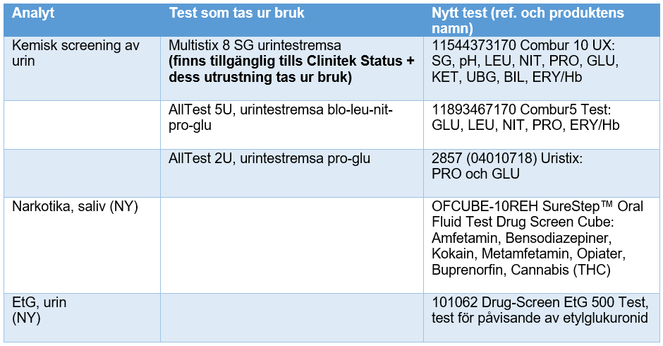 Drogtesterna för screening av urin håller på att konkurrensutsättas på nytt. Vi informerar om dessa i ett senare skede.