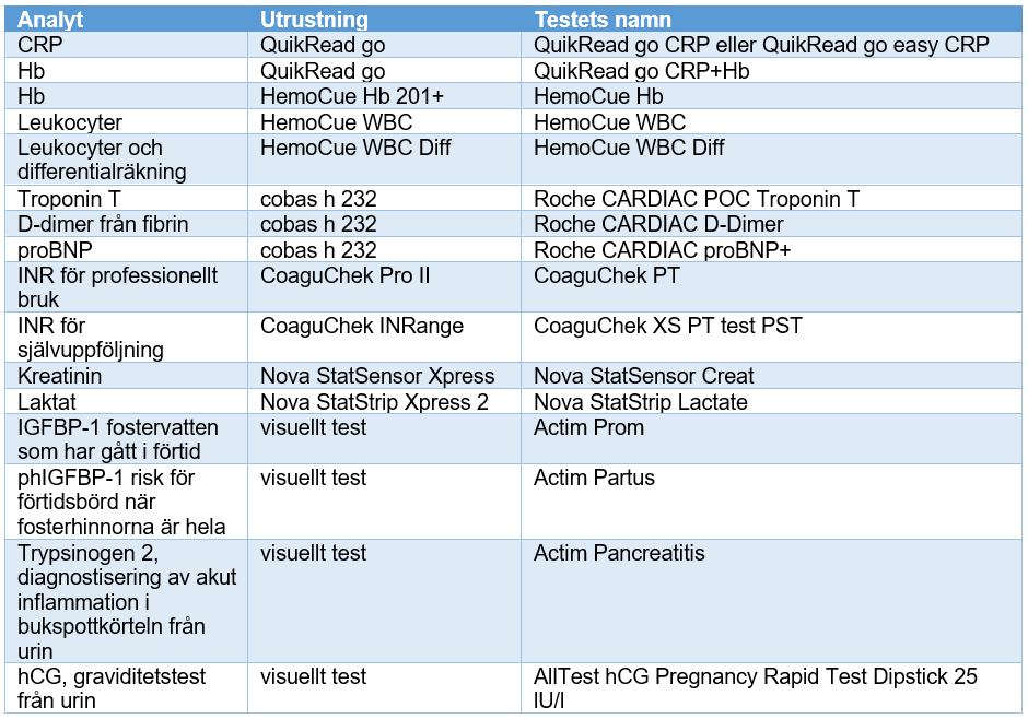 Fimlab har konkurrensutsatt utrustning och tester för patientnära analys enligt följande. Den nya upphandlingsperioden började 1.1.2026. De gamla lagren används först till slut för de produkter som omfattas av förändringarna. Efter det börjar man använda de nya produkterna. Produkter som kräver byte av utrustning, byts ut enligt den introduktionstidtabell som man kommit överens om med Fimlab.